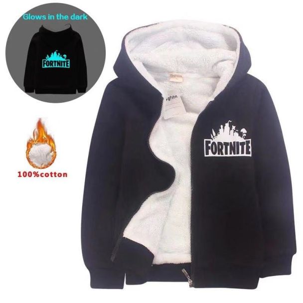 Fortnite Kids Hoodies Zip Up Fleece Jackets Winter Coats Glow in the dark
