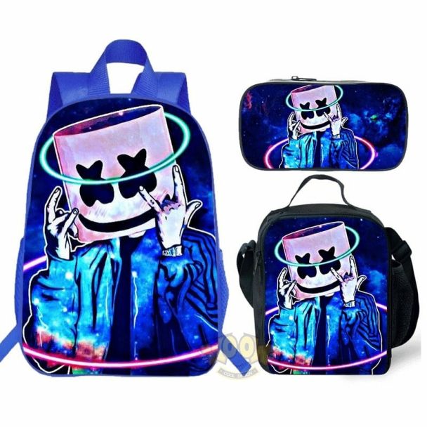 【HOT】marshmello Backpack Lunch box School Bag Kid Bookbag Blue 1