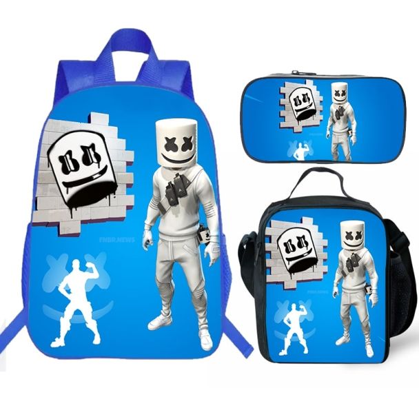 【HOT】marshmello Blue Backpack Lunch box School Bag Kid Bookbag 2