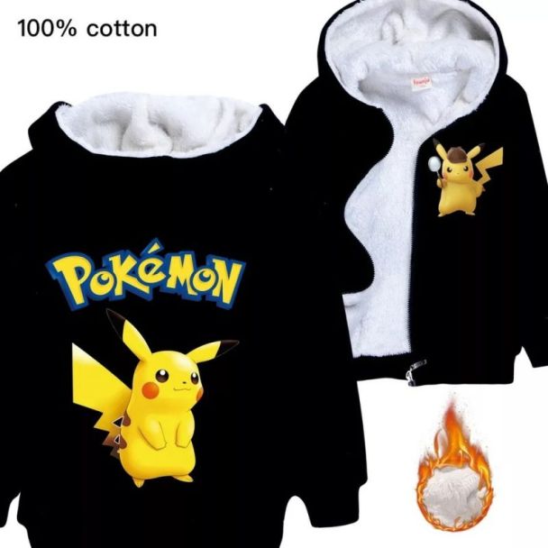 Pokemon Pikachu Kids Hoodies Zip Up Fleece Jackets Winter Coats 2