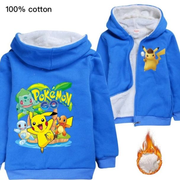 Pokemon Pikachu Kids Hoodies Zip Up Fleece Jackets Winter Coats 3